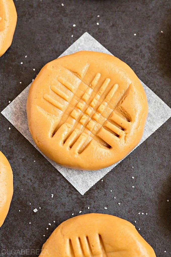 Руками сформируйте маленькие шарики и поместите их на поднос. Расплющите шарики в плоскую форму печенья, используя вилку. Охладите и подавайте.