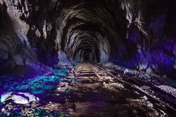Вообще по заброшенному урановому руднику «Лермонтовский» гулять опасно. Штольни Бештау заброшены около 50 лет, грозят обвалами и обрушениями, в них огромнейшая концентрация радона. Но Анна Ящерова рискуя здоровьем туда полезла, чтобы в свете ультрафиолета пофоткать минералы урана и показать нам. Для всех любителей потусторонней радиоактивной красоты.