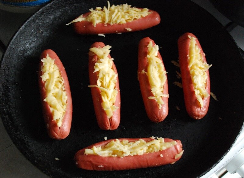 Приготовление Наша первостепенная задача подготовить сосиски для будущего блюда. Их необходимо отварить в кастрюле. Надеюсь, что это делать могут все, поэтому расписывать данный способ не буду.