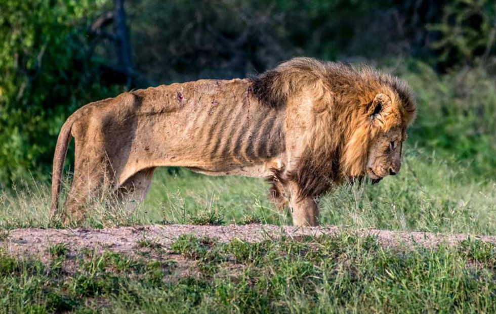 На это невозможно смотреть: истощённый лев доживает свои последние дни