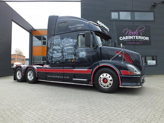 Я никогда ранее не описывал такой интерьер грузовика. Были более или менее роскошные автомобили, были также американские грузовики, но нет сомнений в том что Volvo VN670 от британской компании Malcolm Group является исключительным проектом. Спек лист? Четыре отдельных кресла, декоративный бар для шампанского, большой телевизор, крыша с подсветкой и подсветкой и кровати выезжающей на подвесе из крыше. Управляется все это с планшета, который помещен в держатель на приборной панели или на столе. Красная кожа, даже покрывающая панель водителя, золотистый пластик и золотой логотип компании, напоминающий интерьер офисного здания. Все это в кабине американского Volvo VN670. Также стоит пояснить за внешние декоративные элементы. Что типично для Англичан, у нас здесь роспись аэрографией с историческим уклоном, грузовые автомобили работающие или были одними из самых первых в этой компании. Спасибо, что дочитали до конца! Подписывайтесь на канал. Наша страница Вконтакте - vk.com/trucki