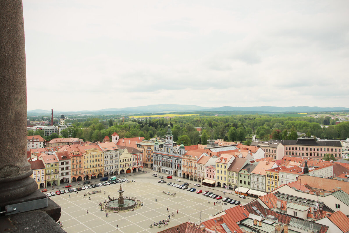 Ческе-Будеёвице, ударение в названии которого, судя по википедии, падает на "у", - это небольшой город с населением меньше 100 000 человек и столица Южночешского края. Город был основан еще в XIII (!) веке, поэтому в нем можно найти все характерные для чешских городов архитектурные и градостроительные решения: большую прямоугольную центральную площадь с ратушей, фонтаном и собором, вокруг которой стоят красивые дома разных видных жителей города. В Чешске-Будеёвице, правда, центральная площадь очень большая и квадратная, что уникально для Европы, но узнать об этом можно только из путеводителя, для неискушенного туриста выглядит она так же, как любая другая.