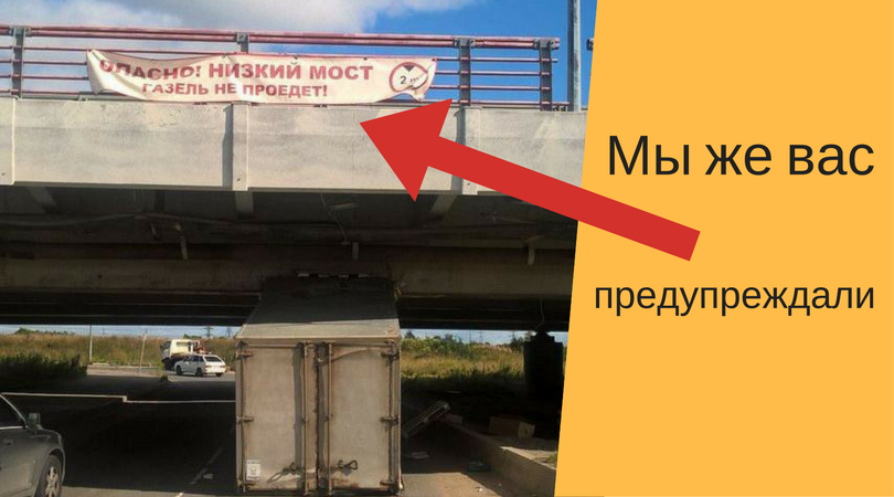 27 мая, в Питере, под мостом, где весит предупреждающий плакат о том, что газель не проедет, застряла 150 газель! Кто-то, даже решил с этим, их поздравить!