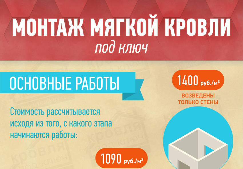 [Инфографика] Монтаж гибкой черепицы под ключ: последовательность работ, уровень цен по этапам