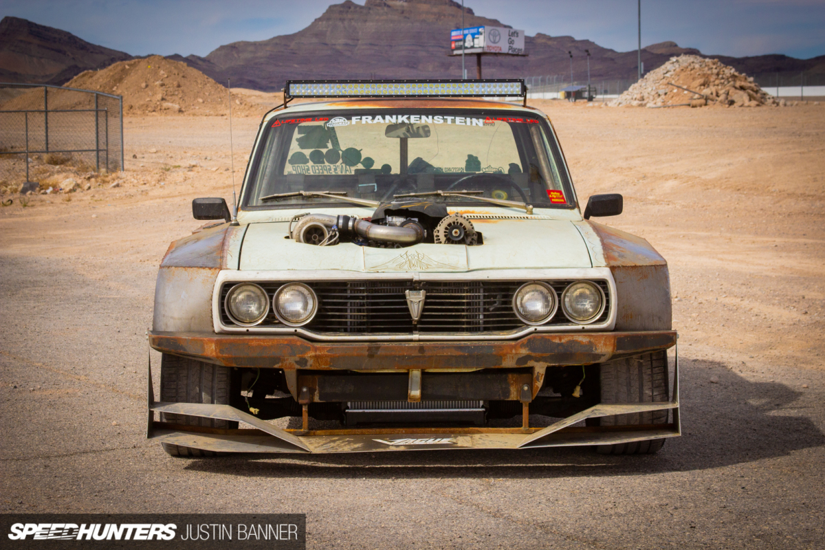 Что делать, если никто не производит комплекты расширения кузова для вашего автомобиля? Ответ прост — сделать самому! В начале этого месяца я был на фестивале Holley LS Fest West, и там встретил Джоша Мазеролле из Vague Industries, с его уникальным проектом. Турбина, пайпы и генератор, торчащие из капота вместе с расширением сразу привлекли мое внимание. Начнем с «вайд-боди». Расширение выполнено из листового металла, именно такими работами Vague известны в Нью-Хэмпшире. Крылья оканчиваются позади колес резкими вырезами. Обвес включает в себя и кастомнй передний бампер и сплиттер. Все из стали. Вы, наверное, подумали что он ездит с толстенными проставками на ступицах, но это не так. Чтобы добиться такой ширины, в машину была инсталлирована подвеска Ford Crown Victoria. Естественно, болт-он ничего не подходило, поэтому Джошу пришлось вырезать переднюю часть рамы и сварить ее заново. Сзади достигнуть необходимого занижения удалось заменой рессор, без особых переделок. Задний мост Fo