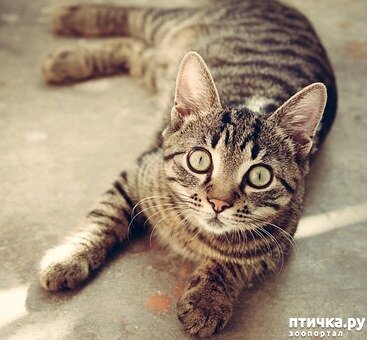 Наверное, первокошка, пришедшая к костру человека, имела такой же удивительный полосатый окрас. Темные полосы на светлом фоне делают маленькую хищницу неприметной для добычи и более крупных врагов. А как красиво подведены глаза у полосатых кошек! Модницам остается только вздыхать в сторонке. Откуда же берутся полосы? Если вы добудите волосок с полосатой кошки, то увидите, что он прокрашен не равномерно, на нем чередуются зоны с различной степенью прокрашивания. Специалисты называют этот эффект тикингом. Но одной неоднородной окраски волоса мало, надо, чтобы волосы распределились правильным образом. У обычной кошки, той самой, что сидит рядом и мурлычет есть уникальный ген Т, распределяющий полосатые волоски правильным образом. Полосатые кошки имеют крепкий иммунитет, отличаются завидным здоровьем и способностью приспосабливаться к различным условиям среды. Наверное, этому способствует естественное происхождение и долгая история окраса. Не доказано, но есть версия, что сред