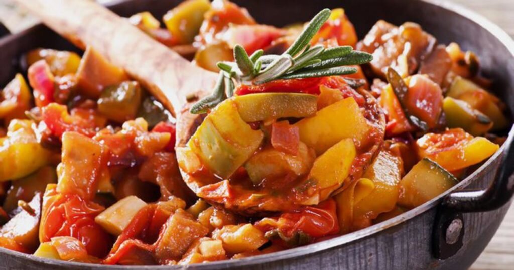 Обед или ужин, в семейном кругу или с гостями – овощное рагу уместно всегда. Готовится оно быстро, почти не требует усилий, а получается всегда вкусно. Рагу – это пространство для экспериментов. Конечно, как у любого другого рецепта, у этого есть список ингредиентов. Но вообще в рагу с картошкой можно добавлять не только лук и морковь, но и любые другие овощи, которые любят в вашей семье или которые ждут своего часа в холодильнике. Попробуйте приготовить рагу по этому вкусному и простому рецепту, и вы еще не раз к нему вернетесь. Вкусный и простой рецепт рагу с картошкой Что нам понадобится: Вкусный и простой рецепт рагу с картошкой: как готовить 1. Картофель, лук и морковь очистить, тщательно промыть. Нарезать кубиками. 1. Чеснок очистить, мелко порубить или пропустить через чеснокодавилку. Зелень вымыть, мелко порубить. 1. Овощи (кроме чеснока и зелени) сложить в кастрюлю, туда же положить томатную пасту, влить 125 мл воды, посолить и поперчить по вкусу. Тщательно перемешать.
