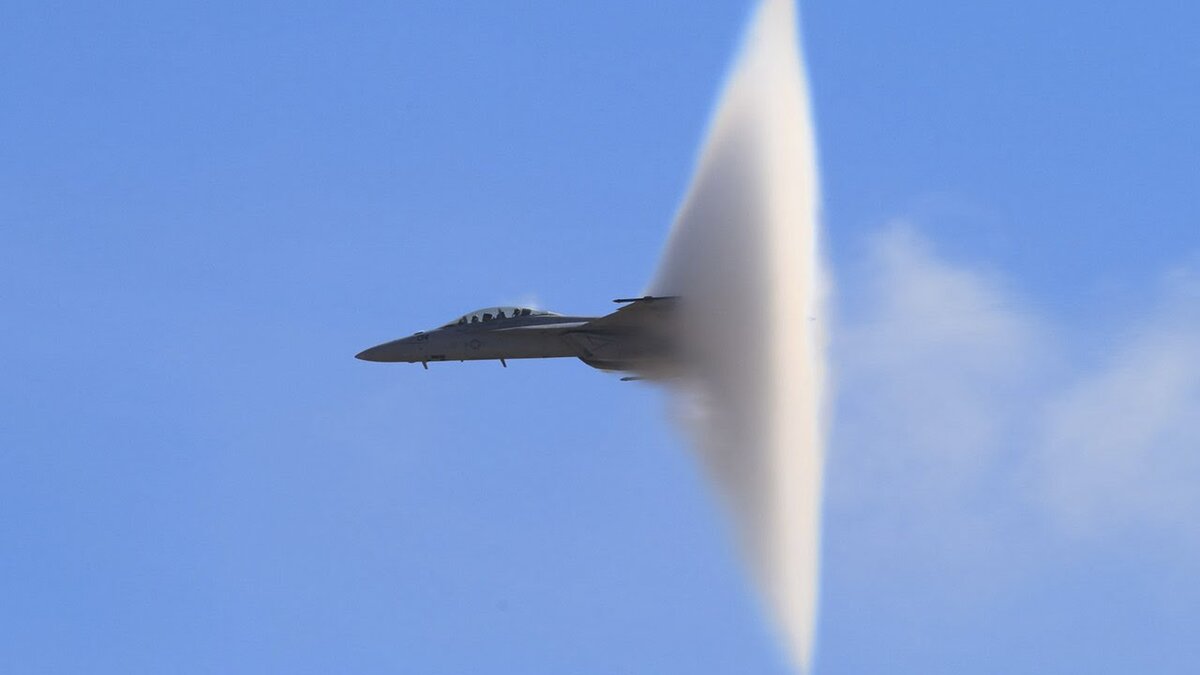 Боевые истребители преодолевают звуковой барьер.