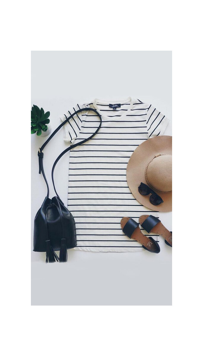 Излюбленная модными блогерами версия платья-футболки – в полоску.