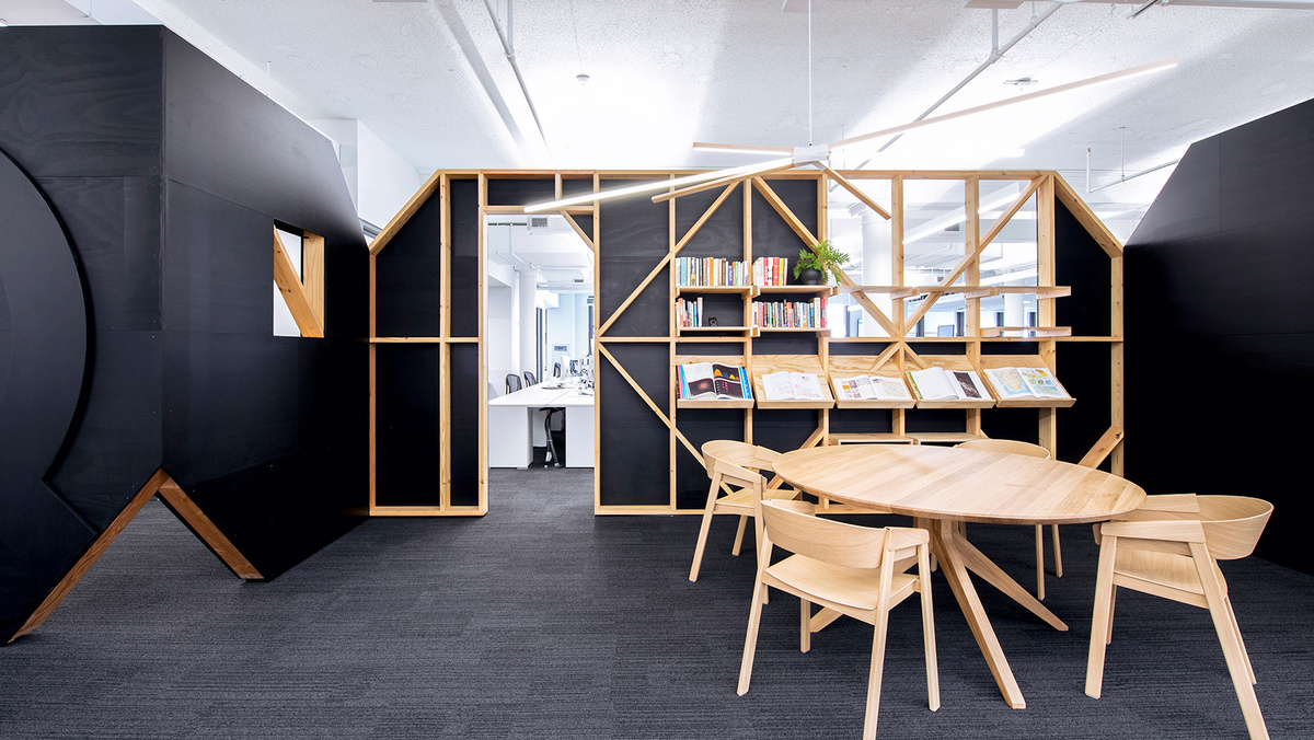 Офис новой штаб-квартиры медиа бренда Quartz располагается в историческом здании, и был разработан, чтобы разместить растущий штат, укрепить бренд и культуру компании. Разработкой офиса занималась американская студия Desai Chia Architecture под руководством Арджун Десаи и Кэти Чиа. Дизайн пространства явно обыгрывает образ кристаллической решетки кварца. Открытый план этажа дает гибкость и обеспечивает работникам офиса оптимальные пути передвижения, улучшая коммуникацию сотрудников из разных отделов. В передней части офиса, отделяющей вход от рабочей зоны, команда создала скульптурные перегородки из конструкционного бруса и листов фанеры черного цвета. В перегородки интегрированы полки для книг, посуды, растений и другого декора. В других зонах офиса архитекторы создали ряд площадок для встреч: от конференц залов для больших групп до телефонных будок для частных звонков, интервью и собеседований. Деревянные шкафы для хранения и скамейки для редакторов стали популярными мест