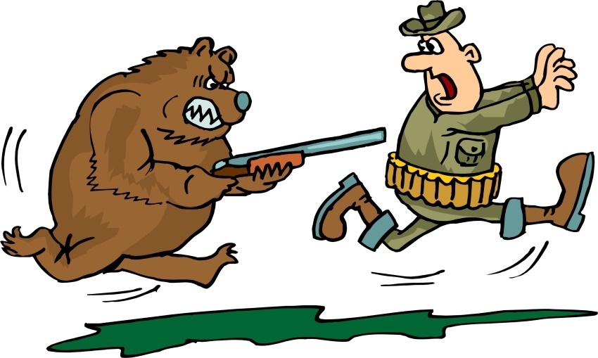 *** История охотника у костра. Был я как то на охоте, Шарика взял. Бродил, бродил никого, да и пёс, куда-то удрал. Вдруг слышу в кустах косолапый рычит. Я притаился в кустах, ствол на готовность и тут ощущаю лапу на плече!!! Понимаю что это пёс мой, а в штаны валить продолжаю *** Из зоопарка сбежал матерый лев. Долго он бродил по городу, порушил много машин. Наконец его загнали на дерево. Так как зверь был очень ценный, надо брать живьем. Позвонили известного укротителю. Ну значит приезжает укротитель с ружьём, веревкой и здоровой собакой. Укротитель мне нужен помощник. Нашли ему помощника. Укротитель дает ему ствол и говорит: Сейчас я полезу на дерево и буду трясти его, Лев упадет, собака схватит его за член, и пока лев будет мучиться, я спрыгну и свяжу его. Понял? Конечно, - отвечает помощника, а ружье зачем? Замочишь собаку, если я упаду первым *** Турист собрался на охоту в лес, лес не знает, берёт с собой местного. Идут они по лесу - проводник спереди, турист идёт за ним, в спин
