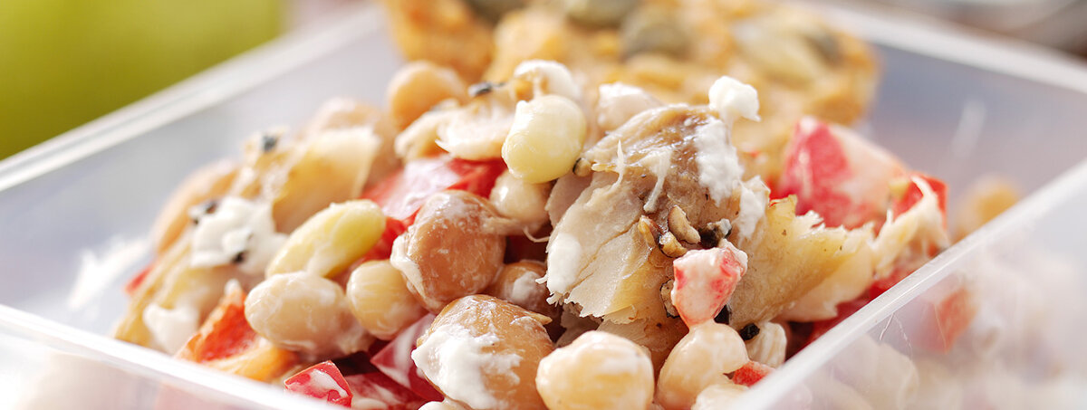 Сегодня мы рекомендуем вам быстрый и легкий способ приготовления insalata estiva, с минимум ингредиентов и минимум времени на приготовление. Богатое на витамины, и просто вкусное блюдо, для летних жарких дней, идеально подходит для ужина или деликатеса на обед. Ингредиенты 170 г йогурта 0% жирности 1 баночка смешанных бобов 1 красный перец 1 чайная ложка хрена 1 филе вареной скумбрий Щепотка черного перца Соль Способ приготовления Для начала помойте и очистит перец от семян, после чего нарежьте его кубиками, в тоже время нарежьте и вареную скумбрию небольшими кусками. Добавьте бобы в миску для приготовления салата, затем добавьте нарезанный перец, хрен, йогурт 0% жирности, и хорошо перемешайте. В конце добавьте нарезанные куски варёной скумбрии, щепотку соли, и щепотку перца, осторожно помешивая. Вот и всё готово, можно подавать на стол! Buon appetito!