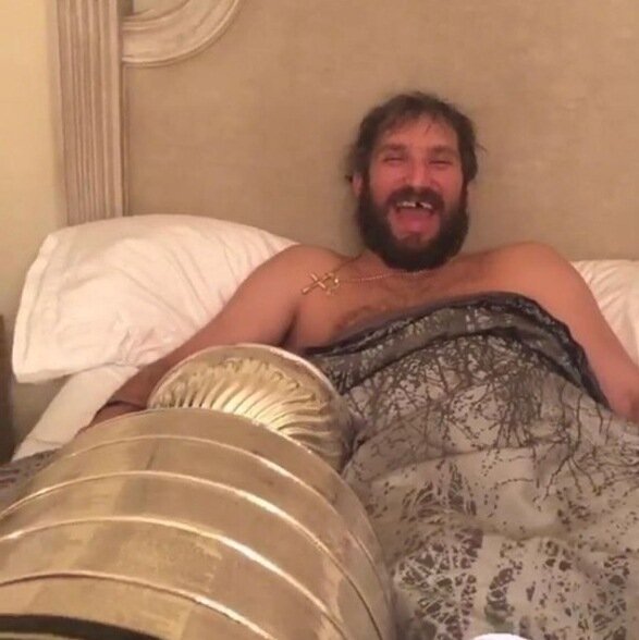 Канал TSN разместил у себя в Инстаграм забавную фотографию, где Александр Овечкин с Кубком готовится ко сну. Все прекрасно знают, что последние 2 дня Овечкин не расстается с Кубком ни на секунду. Вчера после большого застолья с родственниками в своем доме Александр и его жена Анастасия выложили много снимков в Инстаграм. На некоторых из них Овечкин спит с Кубком в кровати. Однако, канал TSN задается вопросом: "Итак, Настя теперь спит на диване? Или..." Это, конечно же, шутка. Жена Александра легко помещается рядом на их просторной кровати, однако теперь возникают сомнения, что сильнее для Овечкина: любовь к Кубку Стэнли или к собственной жене. Ставьте лайк. Подписывайтесь на канал. Следите за НХЛ вместе с нами.