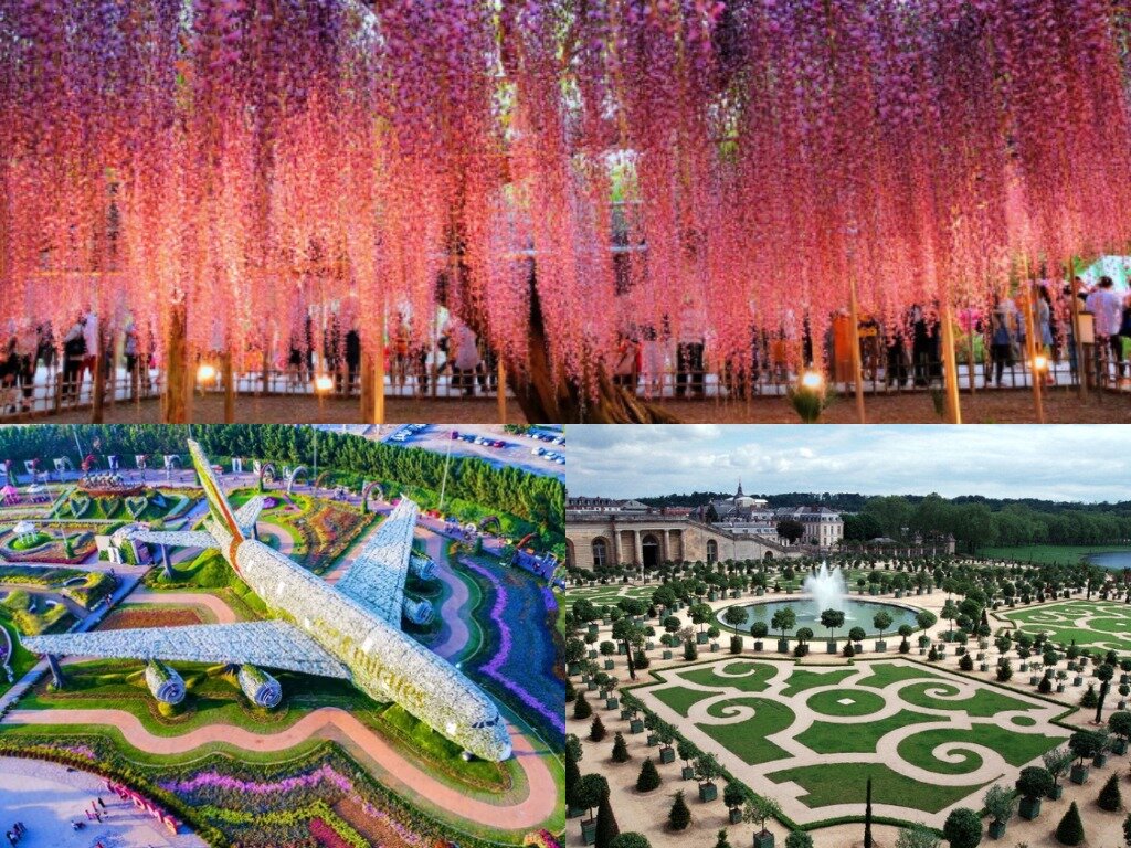 Что ищут 6 млн. туристов в Версале каждый год? Как создаются потолки из цветов и оазисы посреди пустыни? В каком саду не пересчитать даже расцветок цветов? ТОП-5 удивительных садов в мире. # 1 Версальские сады (Versailles Gardens) Эти сады посещают примерно шесть миллионов посетителей каждый год, что они там ищут? Ощущение нахождения в семнадцатом веке. Это не просто 800 гектаров садов, фонтанов и скульптур, это таинство придворных интриг и балов былых времен, находясь там ощущаешь это величие. # 2 Кукенхофские сады (Keukenhof Gardens) Где находиться самый цветущий сад на планете? Конечно в стране цветов Нидерландах, в городе Лисса. Больше цветов и расцветок чем здесь, пожалуй, больше нет нигде. А еще здесь есть мельницы, фонтаны и проспекты. Вход в сад платный, работает он с марта по конец мая во время цветения тюльпанов. # 3 Сады Бутчартов (Butchart Gardens) Эти сказочные сады находятся на острове Ванкувер (Канада) в городе Брентвуд-Бей в Британской Колумбии. Только представьте ц