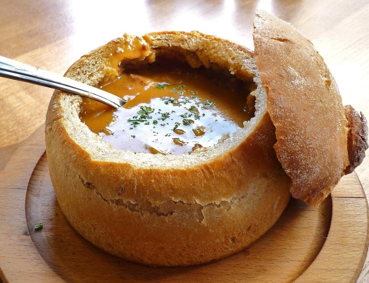 Суп в хлебе готовят во многих странах: в Украине, Латвии, Чехии. У каждого народа свои секреты, но всегда это восхитительный вкус. Такой суп все домочадцы съедят до последней крошки вместе с «тарелкой» в прямом смысле слова.