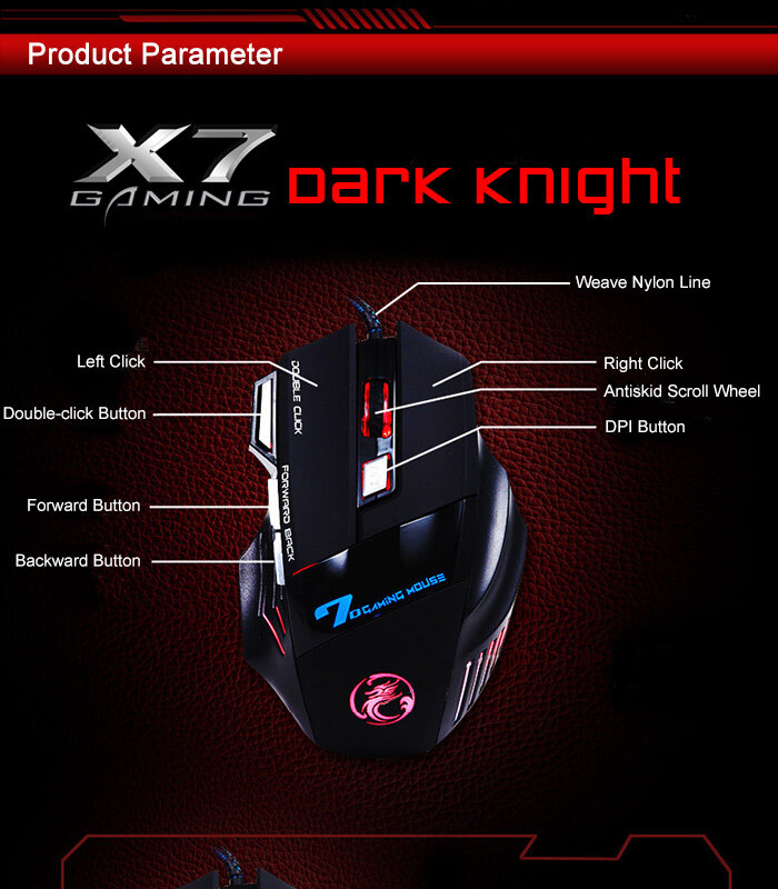 Доброго времени суток, уважаемые читатели. Сегодня нам в руки попалась достаточно неплохая игровая мышь X7 Gaming, о которой мы и поговорим. Мышка довольно компактная и одновременно удобная и эргономичная, выполнена из глянцевого пластика с матовыми кнопками. Максимально поддерживаемое разрешение 5500dpi, но его можно менять небольшой кнопкой, расположенной сразу за колёсиком прокрутки. Также немаловажную роль играет подсветка - она сразу подчёркивает собой игровую мышь. Подсветку можно включить как синего, так и красного цвета. Из прочих достоинств можно отметить качественный нейлоновый кабель и три дополнительные программируемые кнопки, что будет очень удобно для большинства игр. Также стоит отметить количество заказов этой мышки на Aliexpress - свыше 10000, что говорит о её популярности и качестве. А вот и несколько фотографий данной мыши: Ну и напоследок видео об использовании этого крутого девайса: Спасибо за прочтение статьи! Ставьте лайки и присоединяйтесь, будем рады видет