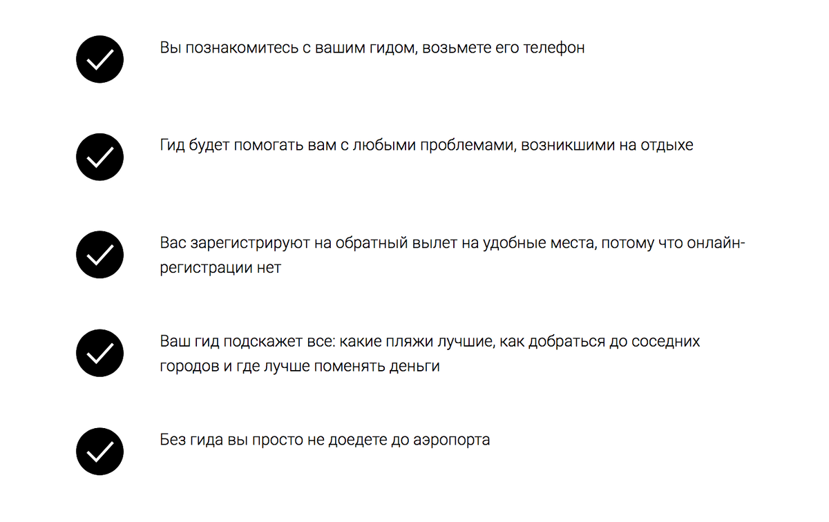 Если вы полетели отдыхать по туристической путёвке, по пути в отель вам скажут, что завтра надо придти на встречу с отельным гидом. И обязательно прямо всей семьей, включая детей и стариков. При этом время встречи не всегда удобно, да и вообще — лично мне всегда жаль каждой минуты на отдыхе. Но это якобы НАДО: Всё это брехня. Единственная полезная вещь, которую делает «отельный» гид — рассказывает, что за день до вылета на ресепшен отеля вывесят время вылета и выезда из отеля. Но теперь вы и так в курсе. Кроме того, время вылета вам может сообщить компания, в которой вы купили тур, в моем любимом онлайн-турс информацию присылают на почту. Вас всей толпой гонят на встречу с гидом только для того, чтобы продать впарить путёвки-экскурсии. Расскажут очень красочно, так, что кому-то из вашей большой компании захочется купить сразу всё. Никакой помощи гид вам не окажет, ничего не подскажет, если только в этом нет материальной заинтересованности. Например, вас действительно могут з