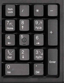 Все цифры, кроме 5 и 0 управляют движением курсора.
