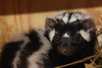 Иногда в мире встречаются животные,которых нельзя брать домой из-за их вонючести 5)Африканский хорёк Африканский хорёк имеет чёрный окрас с широкими белыми продольными полосами, хвост белый и пушистый, на голове имеются белые пятна, снизу тело тёмное, почти чёрное. Африканский хорёк, как и большинство куньих, защищается от врагов при помощи анальных желез, которые выделяют вонючий секрет, при этом он по запаху лишь немного уступает секрету, выделяемому скунсом. 4) тасманийский дьявол Сумчатые дьяволы весьма агрессивны, однако привычка широко раскрывать пасть, как бы в зевке, у них является не способом устрашения и агрессии, а, скорее, признаком неуверенности. Будучи встревоженными, тасманийские дьяволы, подобно скунсам, издают сильный неприятный запах. Несмотря на свирепость, даже взрослые сумчатые дьяволы поддаются приручению, и их можно держать как домашних животных. 3)Овцебык Овцебык — арктическое млекопитающее семьи Bovidae, известный своим толстым мехом и сильным запахом. Этот ар