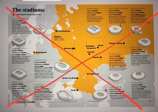 Британское издание The Times в номере своей газеты, в котором были изображены локации предстоящего Чемпионата мира по футболу, опубликовало карту России с Крымом. Об этом на странице своего официального аккаунта в социальной сети Twitter сообщило посольство Украины в Великобритании. На данное событие незамедлительно отреагировала украинская сторона. Читайте: На Украине заявили о необходимости патрулировать Азовское море и Керченский пролив «Посольство обращает внимание The Times на тот факт, что неприемлемой является отметка Крыма, который был аннексирован в 2014 году, как части России», - отмечают в посольстве Украины в Великобритании.