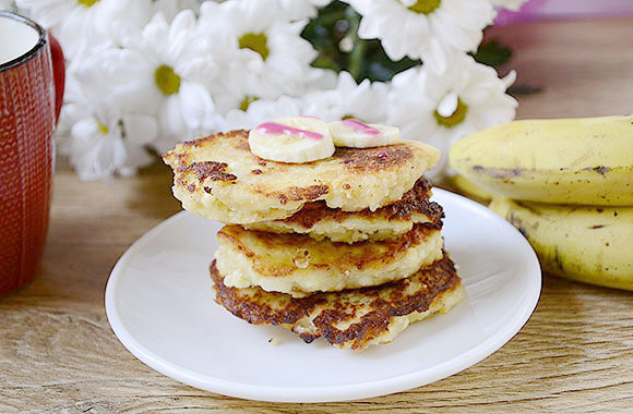 Каждый, кто следит за своим здоровьем, а также здоровьем своих детей, скажет, что молочные продукты, а в частности творог, должны быть в ежедневном рационе. Разумеется, лучше приготовить из этого творога что-то вкусное и конечно же полезное, что понравится детям и удовлетворит взрослых. Давайте испечем творожники на сковороде с бананом. Этот рецепт давно зарекомендовал себя в нашей семье, и дети с удовольствием уплетают перед школой румяные творожники со сметаной. Они получаются нежными, пышными и очень-очень вкусными. В этом блюде нет муки, ее мы заменили овсяными хлопьями мелкого помола – это еще один плюс. В нем также нет сахара: сладость дают бананы. Кстати, для выпечки лучше брать очень спелые фрукты. У нас обычно в тесто идут те, с которыми дети не справились, или которые долежались до темных боков: есть уже неохота, а для теста – самое оно. Вот и смотрите, с какой стороны ни глянь, это блюдо - одни плюсы! Время приготовления - 30 мин Количество порций – 6 Ингредиенты: Твор