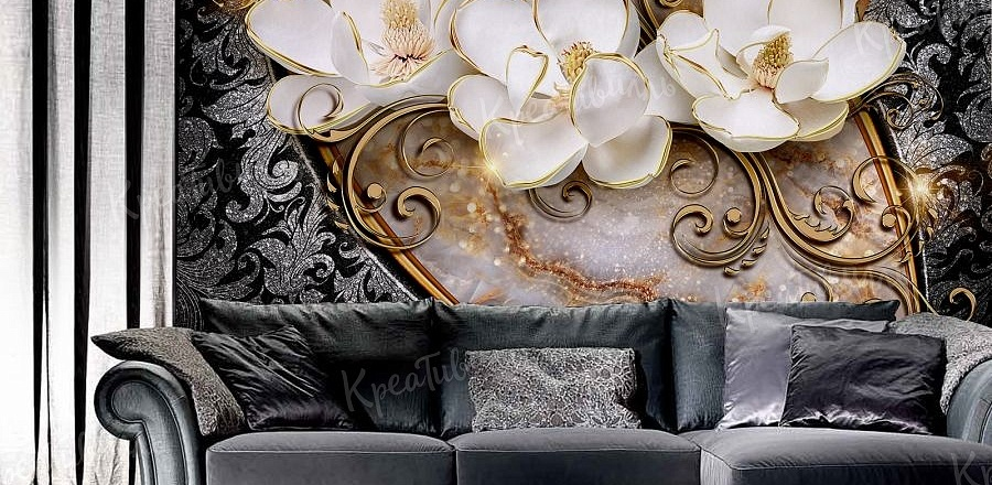 Сюжеты с нашими 3д обоями, в которых сочетается тема цветов и каменная фактура, как раз специально разработаны для использования в тандеме с интерьерным камнем. Общая тема сделает такое оформление гармоничным, а хрупкие цветы добавят игру контрастов и внесут уютные и нежные ноты.