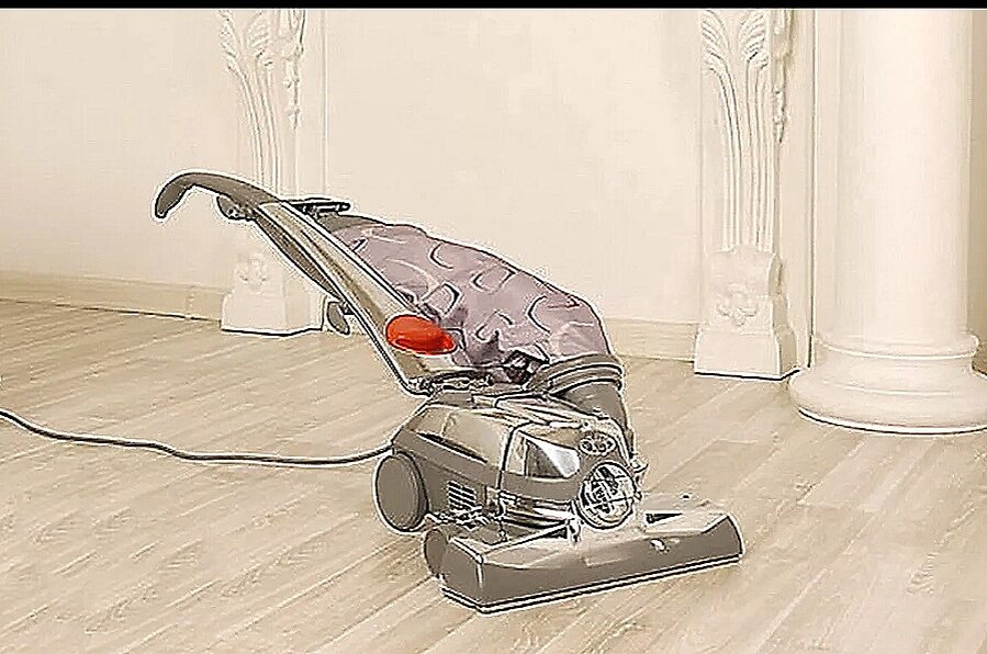 Многие наверное сталкивались с продавцами пылесосов Кирби. Нам тоже каждые пару месяцев звонили и напрашивались на демонстрацию. Однажды отцу их назойливость надоела и он согласился. В назначенный день приехали два молодых человека в костюмах. Заволокли в квартиру коробку с пылесосом и понеслась... По всей квартире равномерным слоем начали рассыпаться грязные одноразовые фильтры от Кирби. Минут через двадцать наступила кульминация выступления — они попросили показать им наш пылесос, чтобы мы могли сравнить, насколько их чудо техники лучше и мощнее. И тут батя достал нашего "Слоника". Слоника он делал сам в начале девяностых. Сердцем ему служила турбина от заводской вентиляции номинальной мощностью в 5 киловатт. Она была упакована в металлический корпус от советского пылесоса "Тайфун", дополненный посередине широким стальным кольцом, чтобы турбину эту вместить. Сверху пылесоса припаян реостат. Сколько я себя помню — Слоника никогда не включали больше, чем на 20% от мощности. Батя выст