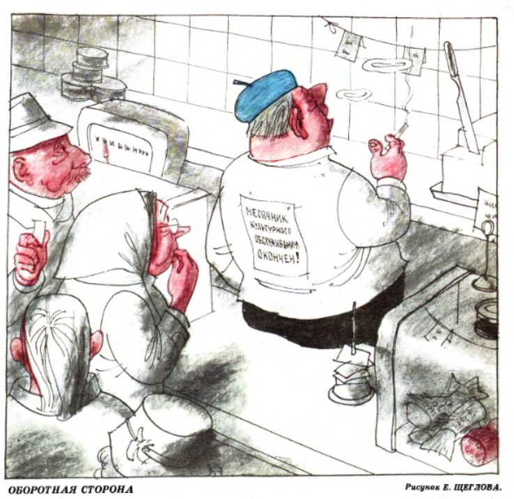 Друзья, привет! Сегодня второй день нашего «Крокодил»-марафона, в процессе которого будут публиковаться самые веселые вырезки из рупора советской сатиры в прессе – журнала «Крокодил». Вот вам ещё восемь «веселых картинок». ВЫПУСК № 2 СОВЕТСКИЙ СЕРВИС – СУРОВЫЙ СЕРВИС Кто бы чего не говорил, а хамоватые советские продавцы и иные представители сферы услуг еще долго будут хрестоматийными персонажами, упоминаемыми лишь в негативном свете. Иногда, конечно, ситуация на местах менялась, но на очень непродолжительное время. Происходило это в рамках «Месячников культурного обслуживания». Вот в эти периоды продавцы становились чуть более приветливы. Понятно, что эти месячники происходили по указке сверху, а когда подходили к концу, то все возвращалось на круги своя… А С ЗАВОДОВ ВСЕ КРАДУТ… Посмотрите на этот замечательный рисунок. Он – иллюстрация самого большого порока советского общества. К сожалению, с работы тащили многое, от мала до велика, пропорционально занимаемой должности. Простой ра