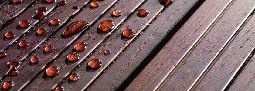 Устойчивой к внешней среде – за счет приобретения более плотной структуры максимально понижается гигроскопичность, дерево перестает впитывать влагу. На него больше не действуют не только пары, даже прямое попадание воды никак не скажется на материале, а при полном погружении в водную среду на длительное время влаги накопится не больше 8 % от общей массы. Дождь, снег, туман и другие капризы природы термодревесина, в отличие от обычной, перенесет совершенно спокойно.