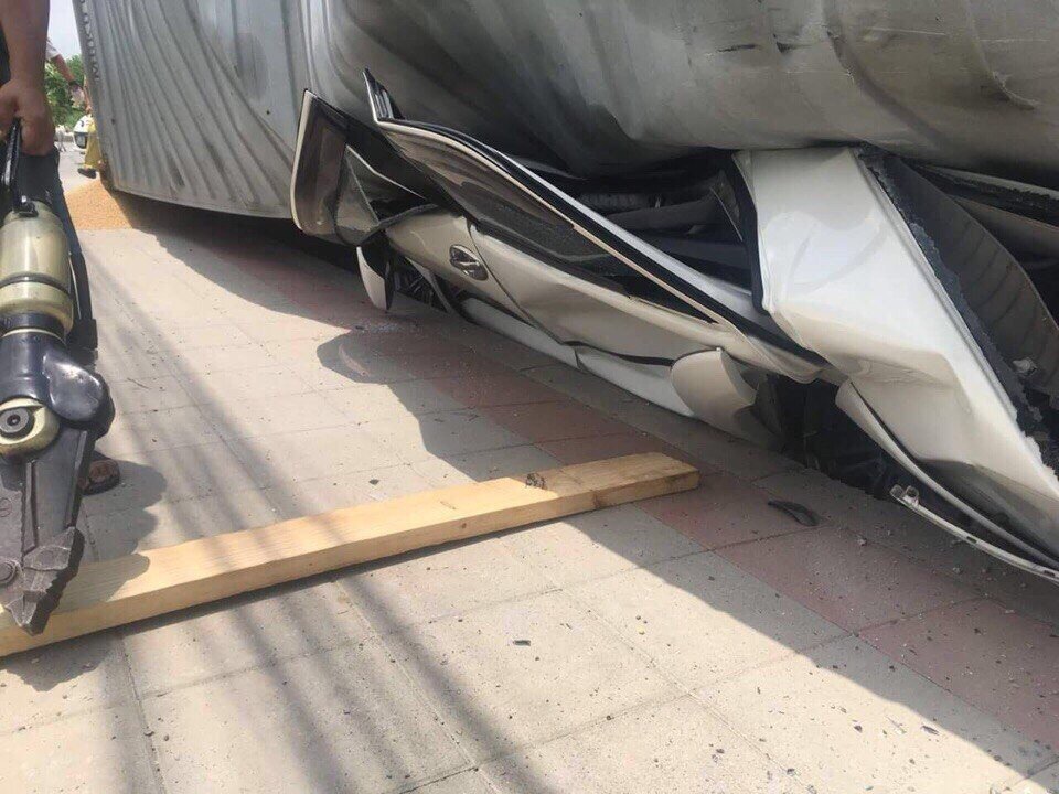 В Индии, водителя фуры, не справившегося с управлением, занесло на повороте и завалило прямо на едущую навстречу Toyota Camry. В машине находился один водитель, который получил серьёзнейшие травмы, но чудом остался жив.