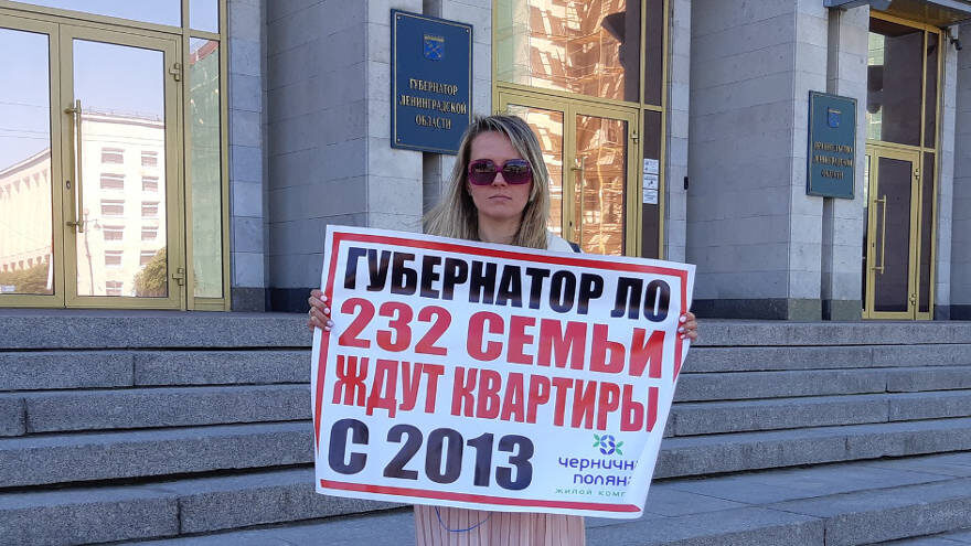 Пайщики МЖК «Черничная поляна» провели пикеты у Правительства Ленобласти