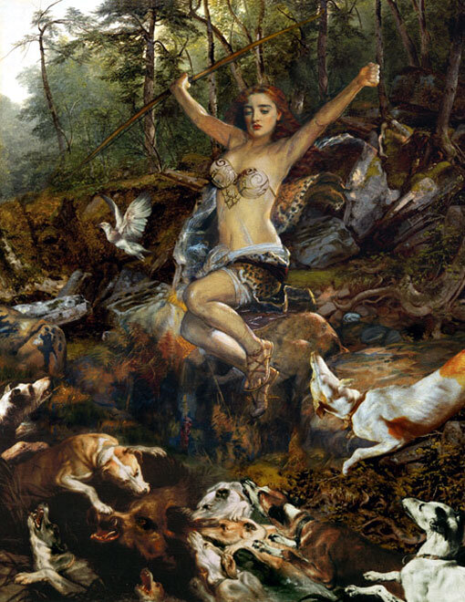 Аталанта (Atalanta), в греческой мифологии участница калидонской охоты (Аполлодор, I 8, 2-3) и похода аргонавтов (Диодор, IV 41). Вероятно, образ Аталанты возник из слияния двух первоначальных образов героинь: аркадской, славившейся меткой стрельбой из лука, и беотийской, знаменитой быстротой ног. По двум версиям мифов. Аталанта — аркадианка, дочь Яза и Климены; воспевается в греческих сказаниях, как славная охотница, искусная в стрельбе из лука. Аталанта — беотянка, дочь Схенея, славилась красотой и быстротой бега. Отец Аталанты, недовольный тем, что родилась дочь, а не сын, выбросил ребенка, и девочку вскормила медведица, а воспитали охотники. Когда девушка подросла, она стала единственной женщиной, принявшей участие в знаменитой калидонской охоте. В "Мифологической библиотеке" Аполлодора упоминается свыше двадцати участников калидонской охоты: калидонцы Мелеагр и Дриас, плевронцы - сыновья Фестия, мессенские близнецы Идас и Линией, Диоскуры из Спарты, Тесей из Афин, аркадяне Анкей