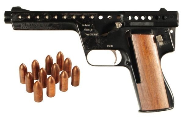 Практически бесшумный, без отдачи, по мощности в 2 раза превосходящий Кольт М1911. Да, это же прорыв! Но… В начале 60-х годов прошлого века, основателям американской фирмы, занимающейся производством сигнальных ракет, пришла «революционная идея» создать пистолет, использующий реактивные пули. Такой вид боеприпасов должен был обеспечить максимальную мощность при отсутствии отдачи и шума. Спустя несколько лет задумка была воплощена в жизнь и миру представили Gyrojet Mark I. Конструкция пистолета была предельно простой. Ствол, рама, да магазин на 6 патронов. Примечательным разве что был ударно-спусковой механизм одиночного действия. Курок пистолета располагался не как у обычных пистолетов за патронником, а, наоборот, перед ним. При нажатии на спусковой крючок, курок надавливал на «нос» пули и упирал ее на неподвижный штырь ударника, вследствие чего приводил снаряд в движение, а тот в свою очередь возвращал курок в исходное положение. Заряжать магазин приходилось вручную, так как