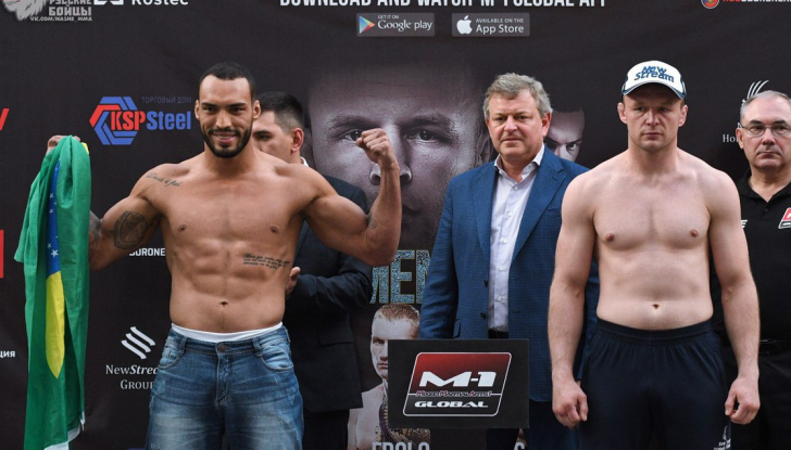 1 июня в Челябинске состоится турнир по смешанным единоборствам под названием M-1 Challenge 93. На котором пройдут 12 боев, а главным его событием станет бой между Александром Шлеменко и Бруно Силвой. На взвешивании бразилец не уложился в лимит весовой категории и получил предупреждение в виде “Жёлтой карточки”. Шлеменко же показал на весах 83,65 кг, при допустимом максимуме 84 кг. Полные результаты взвешивания представлены ниже. M-1 Challenge-93. Взвешивание до 84 кг: Александр «Шторм» Шлеменко (Россия), 83,65 кг — Бруно Силва (Бразилия), 84,4 кг* жёлтая карточка