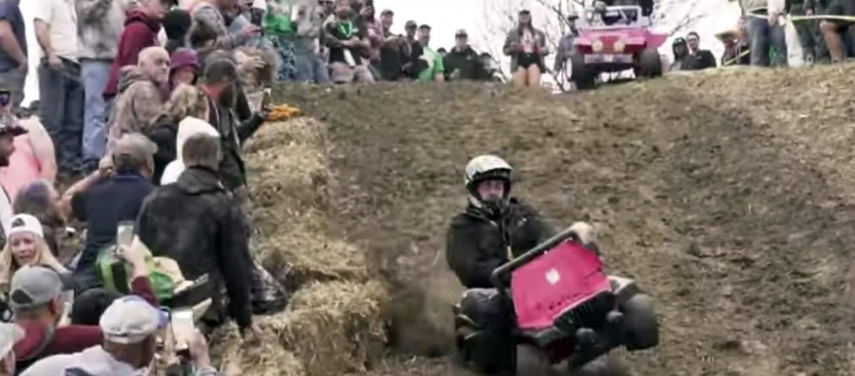 Составляющие: крутой склон, грязь и детские машинки В селении Брокворс, что в британском Глостершире испокон веков существует забава, которую называют Куперсхилдская сырная гонка (Cooper’s Hill Cheese Roll), поглазеть на которую ежегодно собираются толпы туристов. С горы запускают сырные головы, за которыми устремляется толпа местных (и не только), что часто заканчивается для них повреждениями конечностей разной тяжести. Местные власти даже запретили в 2010 году проведения этого мероприятия, но когда это останавливало тех, кто искренне хочет свернуть себе шею в погоне за призом в виде той самой головки сыра весом 5 кило? Оказывается, у этого мероприятия имеется и американский аналог. Называется он Barbie Jeep Downhill Racing. Он берет идею древней сырной гонки и переносит ее в 21 век, добавляя детские машинки. Гонка, у которой имеется альтернативное название "Rednecks with Paychecks" проводится в Сент-Джо, штат Техас. Схема простая - берется детская машинка, устанавливается на ве