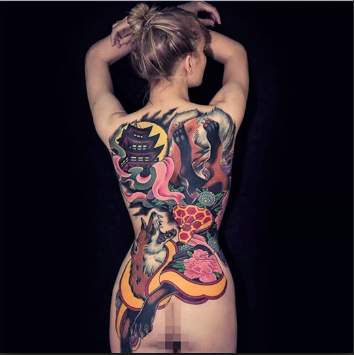 Гейша: Как и таинственная гейша, кицунэ (особенно с девятью хвостами) - мудрые, потусторонние существа. Татуировка кицунэ и гейши (или кицунэ как гейша) представляет собой остроумие, у которого есть секрет. На мужчине эта комбинация могла бы представлять его предпочтение привлекательным и уравновешенным женщинам.