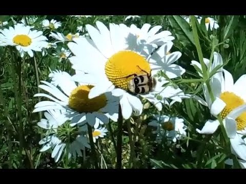 Ромашки. Ромашковое поле. Жуки на ромашках. Жизнь в природе.