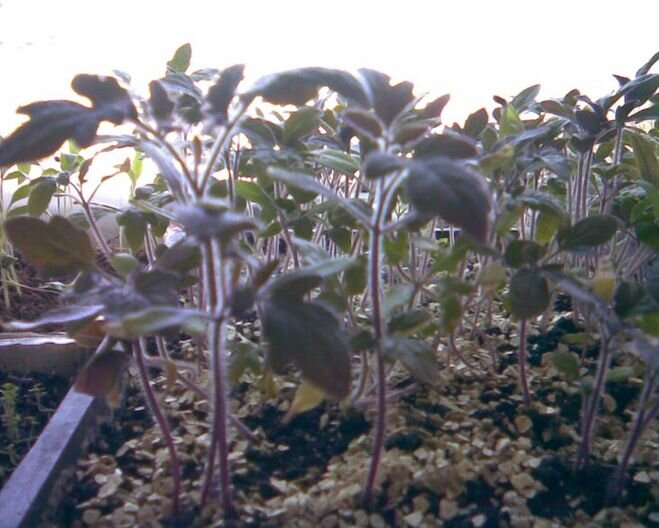 Если вы заметили, что листочки на помидорных кустах стали фиолетовыми – срочно принимайте меры. Такой оттенок листья могут приобрести в двух случаях, и оба они требуют внимания. Стать фиолетовыми листочки могут по простой причине – вашим помидорам попросту холодно. Так бывает при резких скачках температуры. У нас, к примеру, на днях ночью резкое похолодание было, я укрывала пятилитровыми баклажками все, что смогла накрыть, совсем маленькие кустики укрывала на ночь ящиками и пленкой. Если же никакого похолодания в вашем районе не было, а листва на помидорках все равно имеет фиолетовый оттенок, значит проблема в другом – вашим растениям не достает такого микроэлемента как фосфор. Ситуацию исправить просто - возьмите три столовые ложки суперфосфата, разведите их в литре кипятка и настаивайте часов 10. После этого разведите раствор в 10 литрах воды и полейте томаты. Если вы не хотите использовать химические удобрения, вам поможет костная мука. Припорошите ей грядки и полейте томаты.