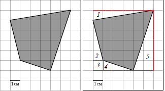 В едином государственном экзамене по математике в части B есть задача, где нужно вычислить площадь закрашенной фигуры. Несмотря на свою простоту, в этой задаче часто допускают ошибки. В этой статье вы узнаете, как решить задачу части В, зная всего лишь одну формулу (площадь прямоугольного треугольника равна половине произведения катетов). Пример 1 Площадь красного квадрата = 6 х 6 = 36. Площадь фигуры 1 = (6 х 1) / 2 = 3. Площадь фигуры 2 = (4 х 1) / 2 = 2 Площадь фигуры 3 = 1 х 1 = 1 Площадь фигуры 4 = (3 х 1) / 2 = 1,5 Площадь фигуры 5 = (2 х 6) / 2 = 6 Площадь закрашенной фигуры = 36 - (3 + 2 + 1 + 1,5 + 6) = 36 - 13,5 = 22,5 Пример 2 Площадь закрашенного треугольника в прямоугольнике 1 = (6 х 4) / 2 = 12 Площадь закрашенного треугольника в прямоугольнике 2 = (6 х 2) / 2 = 6 Площадь закрашенной фигуры = 12 + 6 = 18 Пример 3 Площадь красного прямоугольника = (7 - 3) х (9 - 1) = 4 х 8 = 32 Площадь фигуры 1 = (7 - 3) х (3 -1) / 2 = 4 х 2 / 2 = 4 Площадь фигуры 3 = (7 - 3) х (9 - 5