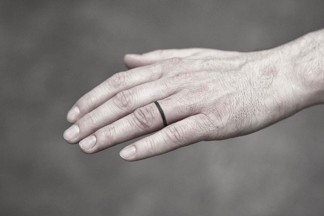 Как тебе идея - не покупать на свадьбу кольца, а придумать оригинальный дизайн обручального тату. Фантазия может быть ни чем не ограничена: публикуем фото как самых простых татуировок, сделанных молодоженами, так и креативные находки со смыслом. Вариант для тех, кто предпочитает лаконичность и минимализм. Простая черная линия на безымянном пальце как знак замужества. А если что-то в отношениях пойдет кардинально не так... Можно будет не удалять, а просто закрыть другим кольцом. Как и не было. А это "обручальные кольца" творческих жениха и невесты. Что характерно - друг без друга эти татуировки не читаются. Хотя и ясно становится, кто в отношениях отдает больше, а кто просто принимает. Кто-то не отказывается от традиционных колец, но добавляет "изюма". Например, набивает дату свадьбу на безымянных пальцах. А кольца ничуть не мешают! Хорошая идея для мужчин, которые все забывают, - так годовщину точно не пропустишь Вариант для романтичных натур - изобразить имена друг друга аккуратным