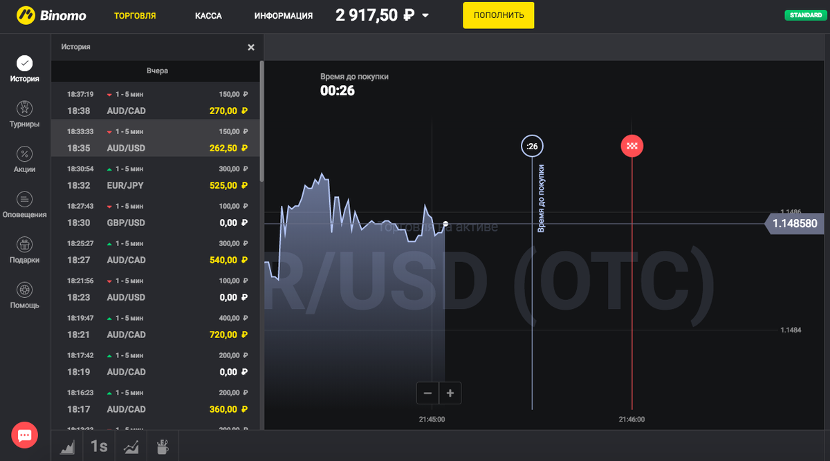 Итак, как я и обещал, буду ежедневно аргументировать мой прошедший день, каким бы он ни был. Не важно, удалось ли мне заработать, или уйти в минус, но я каждый вечер буду выкладывать в виде изображений чего сегодня я добился и сколько на этом смог заработать. У каждого из вас есть уникальная возможность стать свидетелем того, как я, иду вперед к своей мечте, к своей цели. Быть может у вас так же появилась какая то цель, и вам будет вдвойне интересней идти вперед к ней, читая мой блог и ежедневный отчет, сравнивая его со своим, чего вы добились, чего вам это стоило, и что вы чувствуете в конце дня! Не проходите мимо. Подписывайтесь. Даже просто ради интереса. ) Итак, а первый день был удачным. Как вы наверное поняли по изображению, я вышел на бинарные опционы. По истории сделкам вы можете с легкостью посчитать, чего я добился к концу дня!