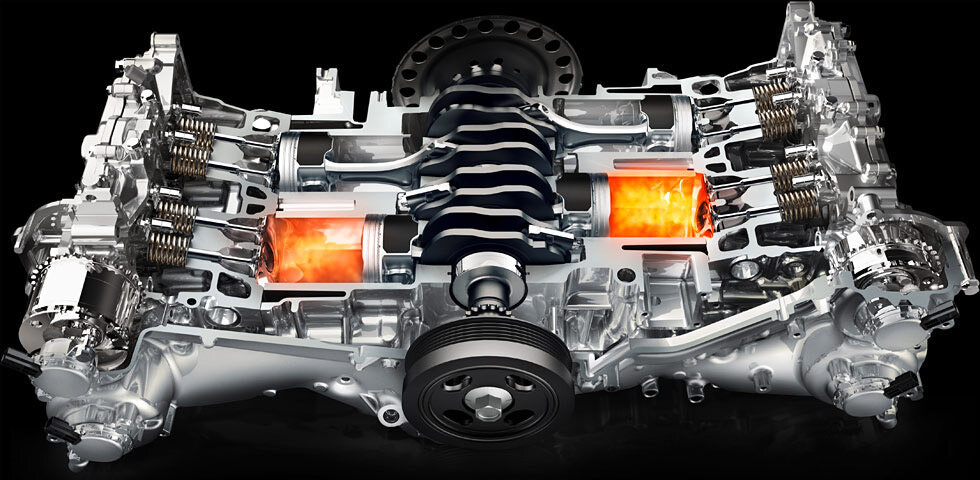 По своему принципу работы в машине оппозитный двигатель субару очень похож на обычный рядный ДВС.