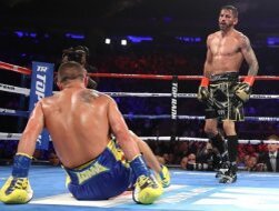 Украинский боксер Василия Ломаченко в бою против Хорхе Линареса впервые в своей профессиональной карьере на боксерском ринге был отправлен в шестом раунде в нокдаун спортсменом из Колумбии. Для Василия за всю историю проведенных им боев, этот выдался самым тяжелым, не смотря на то, что он все же сумел отправить соперника в нокаут в десятом раунде ударом по печени. С первых минут боя стало понятно, что интрига будет сохраняться на протяжении всего поединка. Соперники периодически обменивались ударами, демонстрируя при этом превосходную технику защиты. В шестом раунде Линарес пробил прямым правым на встречу в голову, и Ломаченко не устоял на ногах и приземлился на заднюю точку. Нельзя сказать, что Василий был потрясен этим ударом, он тут же поднялся, но судья открыл счет. Сам Василий Ломаченко, завоевавший титул чемпиона мира по версии WBA в лёгком весе в бою с Хорхе Линаресом, прокомментировал этот нокдаун так: "Я немного расслабился. Я посчитал, что уже всё проделал, что нужно, однак