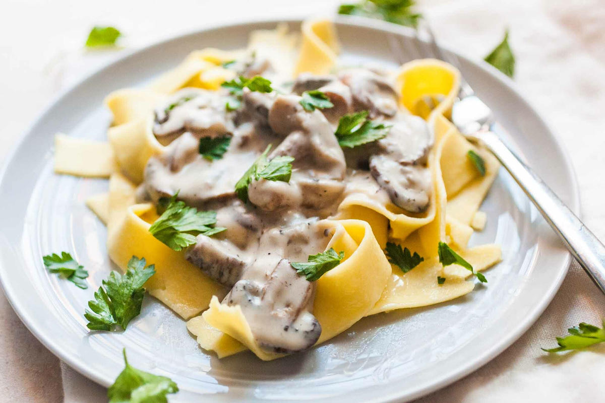 Феттучини Альфредо с грибами- это смесь сырных, сливочных и земляных вкусов. Это достойное ресторана блюдо, которое вы можете полностью приготовить дома. ИНГРЕДИЕНТЫ -100гр грибов кремины, нарезанные -100 гр небольших грибов шиитаке, нарезанных -1/4 чашки масла -1/2 чайной ложки соли -1/2 чайной ложки черного перца -3 столовые ложки муки -2 чашки цельного молока -1 1/2 чашки тертого сыра Пармезан -500гр спагетти или ваши любимые макароны -1/4 чашки нарезанной свежей петрушки ПРИГОТОВЛЕНИЕ 1. Приготовьте грибы: Растопите масло в глубокой кастрюле на среднем огне. Добавьте грибы и варите 6-8 минут, пока они не выпустят свою жидкость и не станут мягкими. Приправьте солью и перцем 2.Добавьте муку в кастрюлю и размешайте ее, чтобы покрыть грибы. Мука образует пасту на грибах, и кастрюля выглядит довольно сухой. Готовьте в течение минуты. 3.Приготовьте соус: медленно добавляйте молоко при перемешивании; мука будет растворяться в молоке. Если какие-либо куски муки образуются, сломайте их