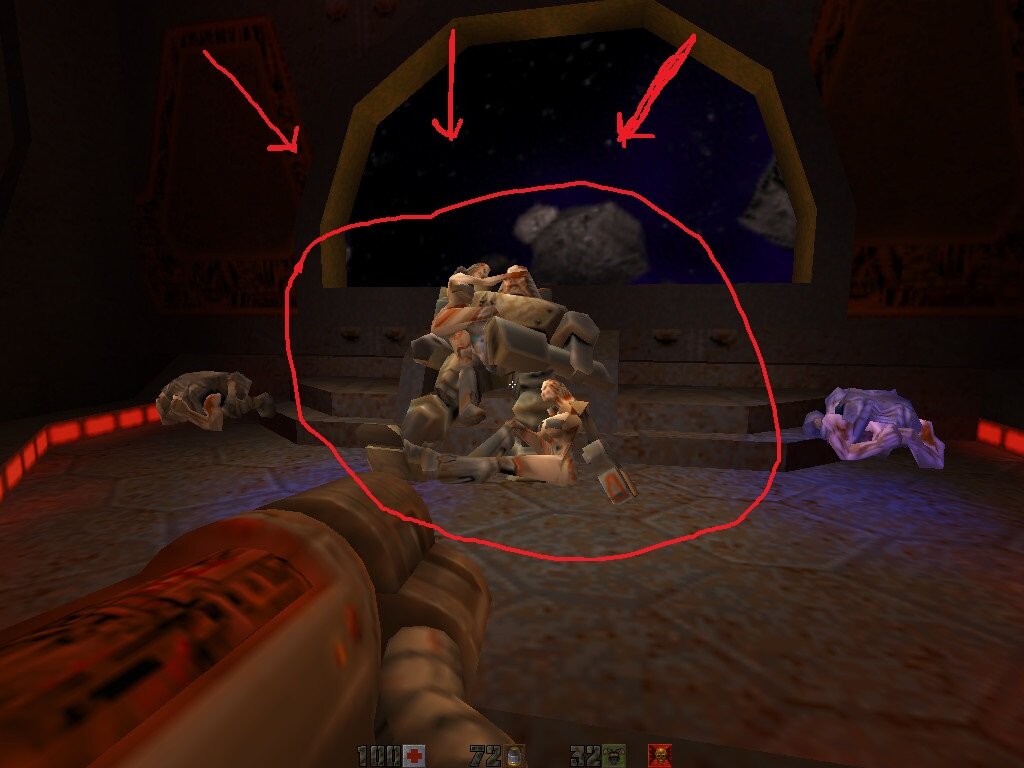 Quake 2 знаком всем по далеким уже нулевым, запомнился он серьезным и где то даже мрачным шутером, в котором нам необходимо остановить лидера строггов на его родной планете, чтобы избежать дальнейших нападений на Землю. Id Software реьята с юмором, поэтому в концовке игры они припрятали "пасхалку", после победы над лидером Макроном, Вы можете открыть секретную местность где будут представлены разработчики, а также релаксирующий огромный робот в приятной компании двух девушек да ещё и с личным бассейном, вот так дела! Подробно как найти это место: Тот самый счастливый строгг А вот и "доска почета" Друзья, если Вам понравилась статья, то будьте добры подпишитесь на этот канал и Вы будете всегда видеть новые статьи и не пропустите ничего интересного, до новых встреч!
