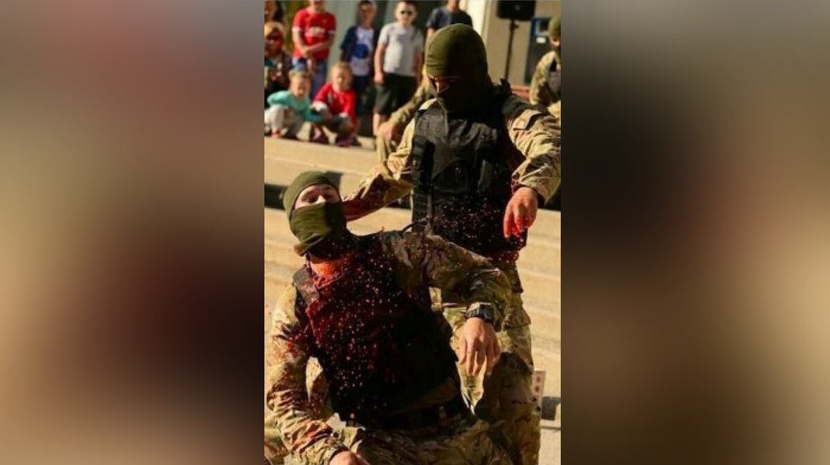 Во время празднования Дня защиты детей в украинском городе Энергодаре Запорожской области спецназ ВСУ показал разные приёмы, включая и элементы ножевого боя. Шоу вояки решили подытожить имитированием поединка с холодным оружием. В какой-то момент боец, одолевший условного противника, на глазах у детей "перерезал" ему горло. Для пущей убедительности военнослужащие использовали бутафорскую кровь, которая хлынула на землю после приёма. Называлось представление, как ни странно, празднично-развлекательной программой "Страна счастливого детства". Наш telegram Мы во ВКонтакте Мы в Facebook
