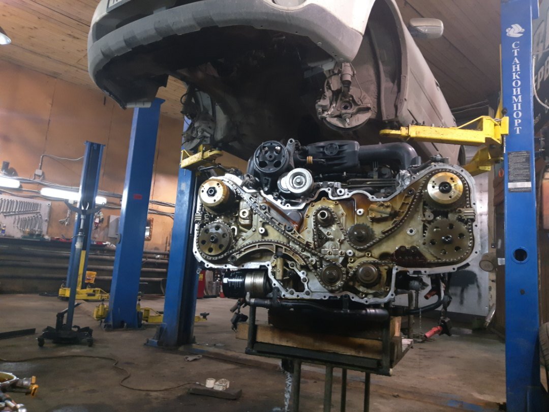 Субару аутбек Замена прокладок клапанных крышек и пердней крышки цепи Обьем 3.0 Такая работа возможна только при снятии двиготеля тк мотор своеобразный на субару ,ну и естественно когда вы его снимете , вы отключите все патрубки охлаждения и все электро разьемы Дальше все просто,откручиваете крышки и меняете прокладки на новые на двух головках Передняя крышка устонавливается на герметик Ставим мотор на место,подключаем все разьемы и оп! 😱😱😃 мотор работает ужастно троит на малых оборотах ,горит ABC,ESP и много много другово при этом постоянно работает вентилятор охлаждения при холодном моторе,стоит только повернуть ключ зажигания На панели горит ошибка p055 А до снятия все было хорошо Эта ошибка указывает на неисправнасть левого датчика ABC Но не спешите его менять не слушайте не кого , просто подключаем хорошую диагностику сбрасываем все ошибки и проезжаем пару километров и все встает на свои места ,мозги адаптируются и все будет ездить как раньше