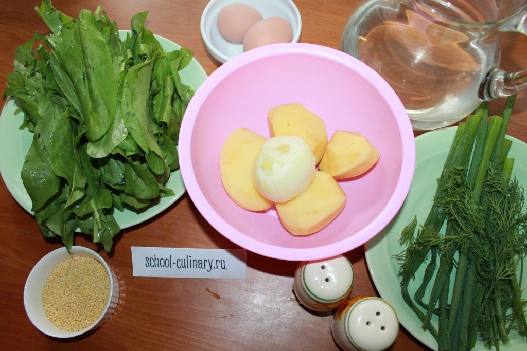 В это время сортируем зелень: щавель, зеленый лук и укроп. Увядшие и поврежденные части выбрасываем. Затем все хорошо моем по отдельности в нескольких водах. Особенно тщательно вымываем листья щавеля: в них может быть песок.