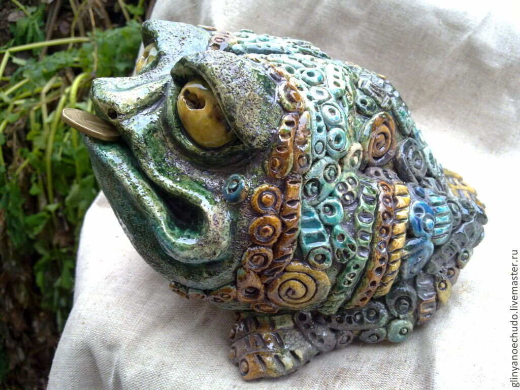 Денежная жаба Здравствуйте, дорогие читатели. Сегодня расскажу вам о замечательном символе, притягивающем богатство. Это трехлапая денежная жаба, еще с древности считающаяся мощным талисманом роскоши и успеха. О появлении золотой жабы ходят легенды. По самой известной из них, жил свирепый и злой разбойник Чань Чу. Он грабил и убивал множество людей. Со временем его злоба стала безграничной, и он начал нападать на низших божеств, после чего последние обратились к Будде. Будда наказал Чань Чу, забрав одну из четырех лап. Теперь, замаливая грехи, Чань Чу пытается помочь людям разбогатеть. Об этом замечательном талисмане мне рассказал мой знакомый владелец китайского ресторана (хотя те, кто увлекается фен шуй, давно знают об этом символе). Приобрести данный талисман можно в любом магазине фен шуй или в сувенирном отделе. Обычно эта трехлапая красавица золотого или бронзового цвета сидит на горке золотых монет или подставке в виде символа Ба-Гуа. Во рту у нее монетка, как символ привлече