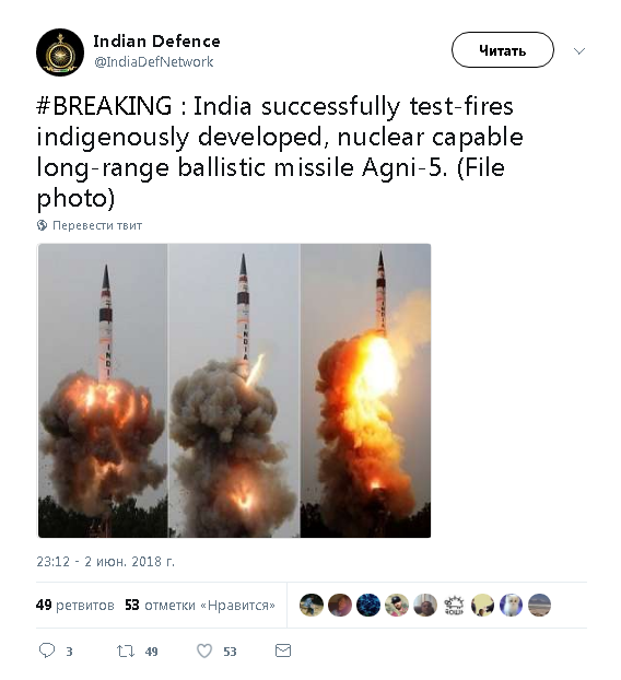 В воскресенье Индия успешно провела испытания своей отечественной ядерной баллистической ракеты большой дальности Agni-5 с дальностью 5000 км. Испытания прошли в районе острова Абдул Калам у побережья Одиши. Это уже шестое испытание Агни-5. "Ракета класса "земля-земля" была запущена с помощью мобильной пусковой установки с пусковой площадки интегрированного испытательного полигона (ИТР) на острове д-р Абдул Калам в Бенгальском заливе в 9: 48 утра. Летно-технические характеристики ракеты отслеживались и контролировались радарами, следящими приборами и станциями наблюдения на всем протяжении миссии", - сказали чиновники мин. обороны Индии, отметив испытания как успешные. В отличие от других ракет серии, Агни-5 является самым передовым с новыми технологиями с точки зрения навигации и наведения, боеголовки и двигателя. ______________________ Малюта специально для Яндекс дзен-канала "СтёбNewS"©(365/12/24) Предлагаем, тем кто ещё не ..., подписаться на "СтёбNewS"© , давайте досмотрим это